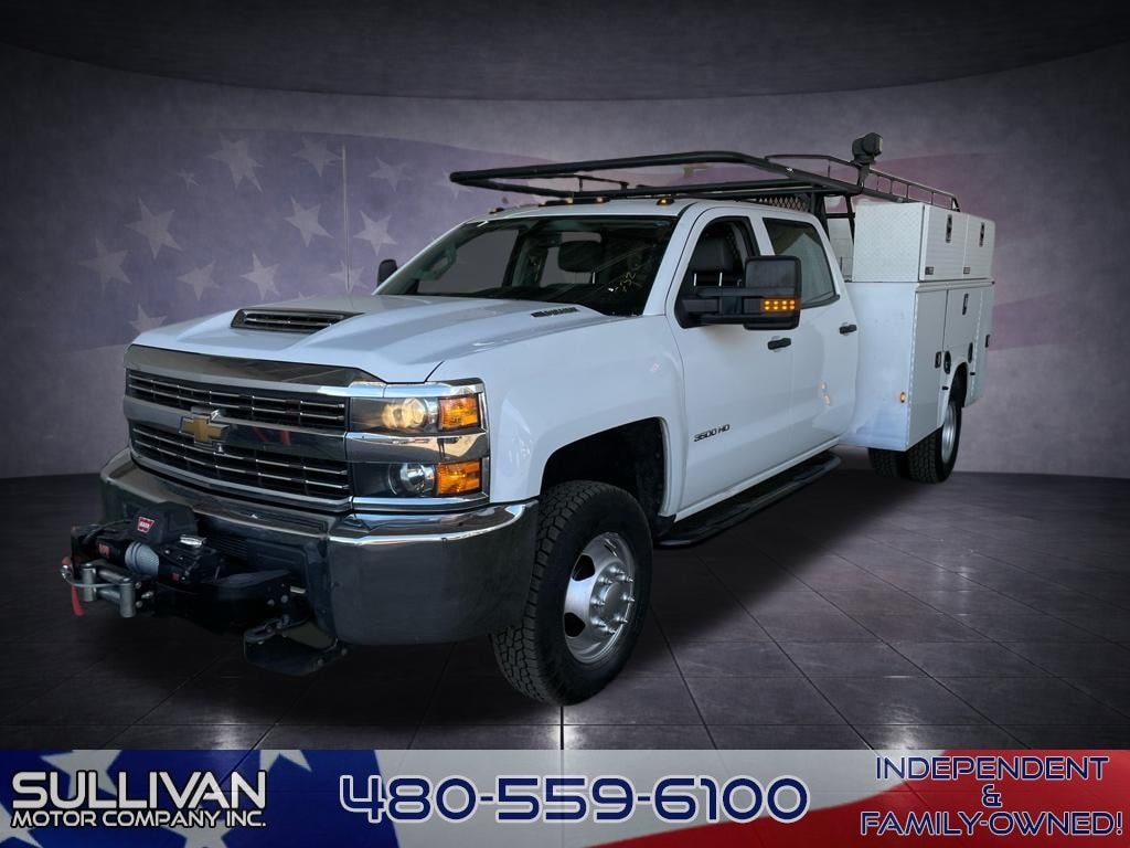 Summit White 2018 Chevrolet Silverado 3500HD Work Truck 4WD Allison 1000 6-Speed Automatic Duramax 6.6L V8 Turbodiesel Allison 1000 6-Speed Automatic, 4WD, Dark Ash Vinyl.